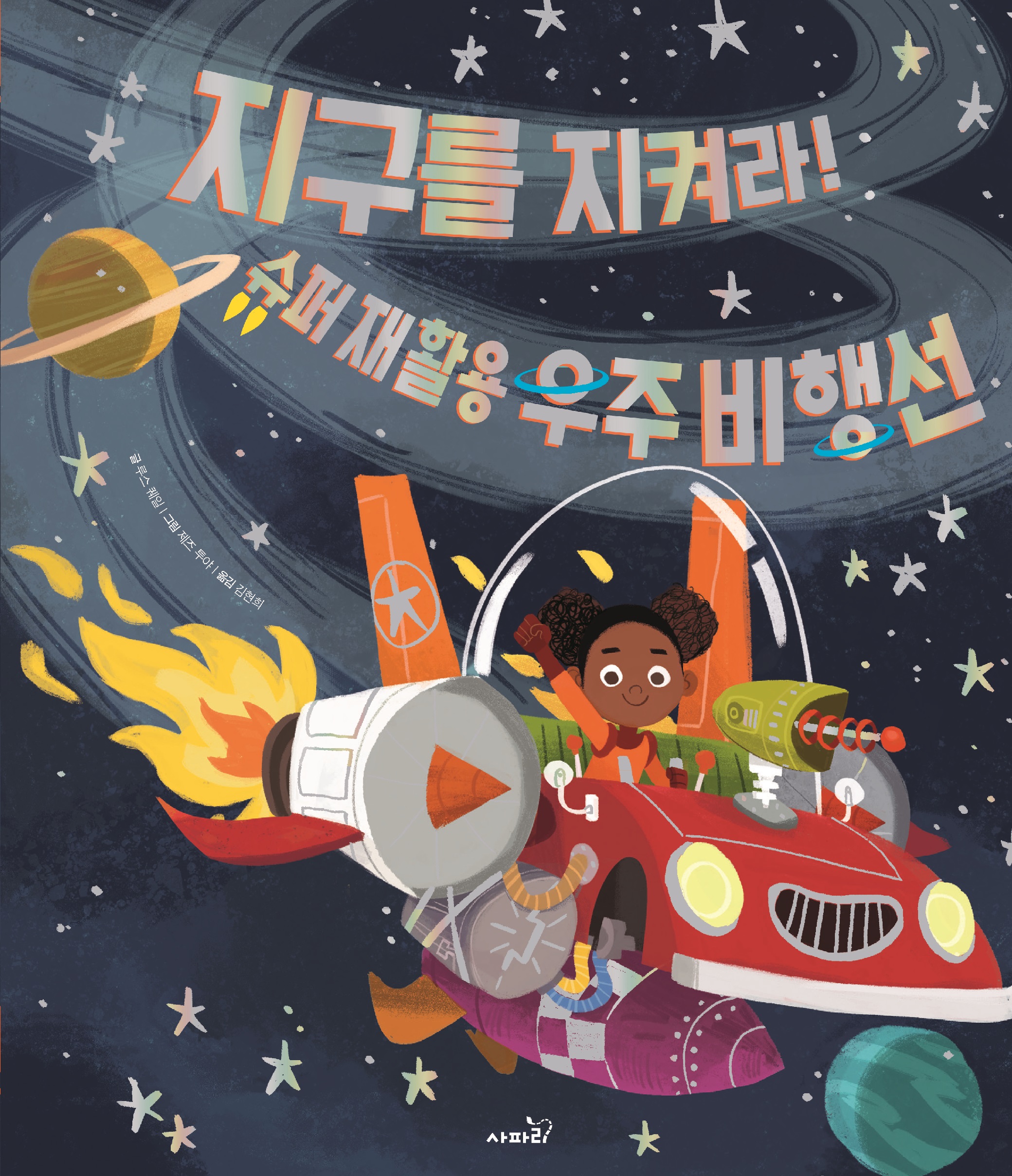 《지구를 지켜라! 슈퍼 재활용 우주 비행선》은 우주를 배경으로 펼쳐지는 흥미진진한 그림책이에요. 달에 위치한 우주 기지로 시시각각 다가오고