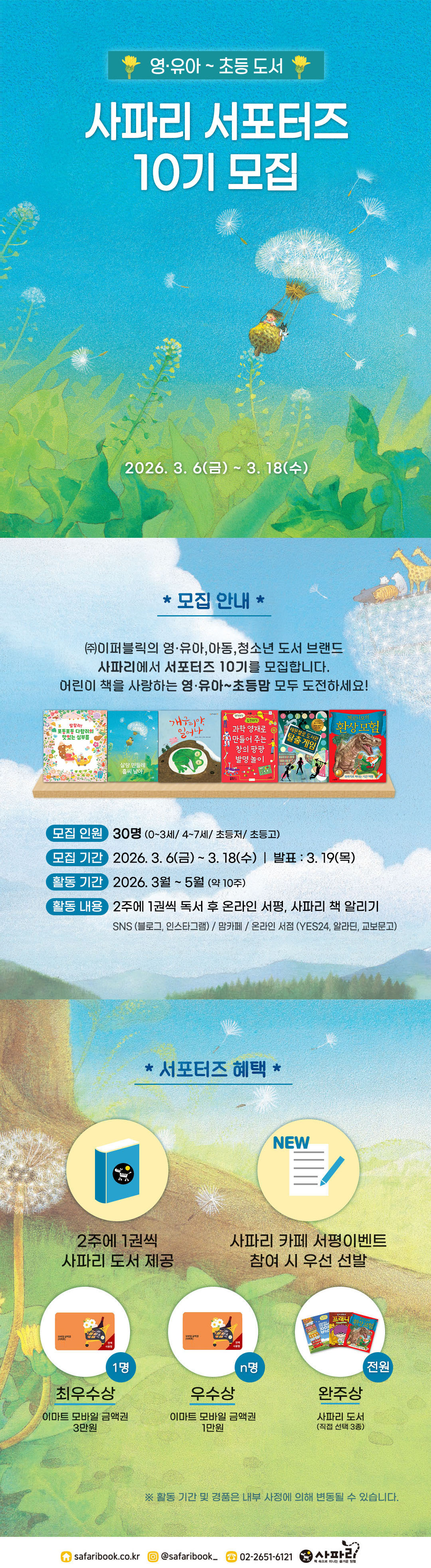 - 완주상 (모든 서평 활동 완료한 전원) : 직접 고른 사파리 도서 3종 (각 2만 원 미만)